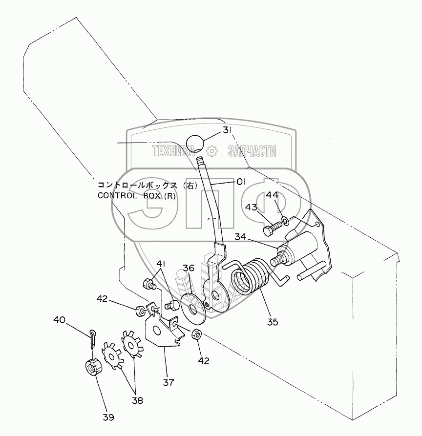 Каталог запасных частей к технике: Hitachi EX-220. ENGINE CONTROL LEVER (1)