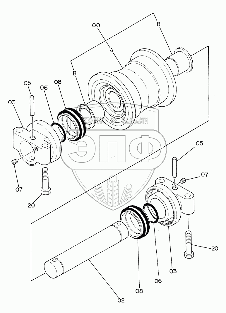 Каталог запасных частей к технике: Hitachi EX-220. LOWER ROLLER (STD. TRACK)