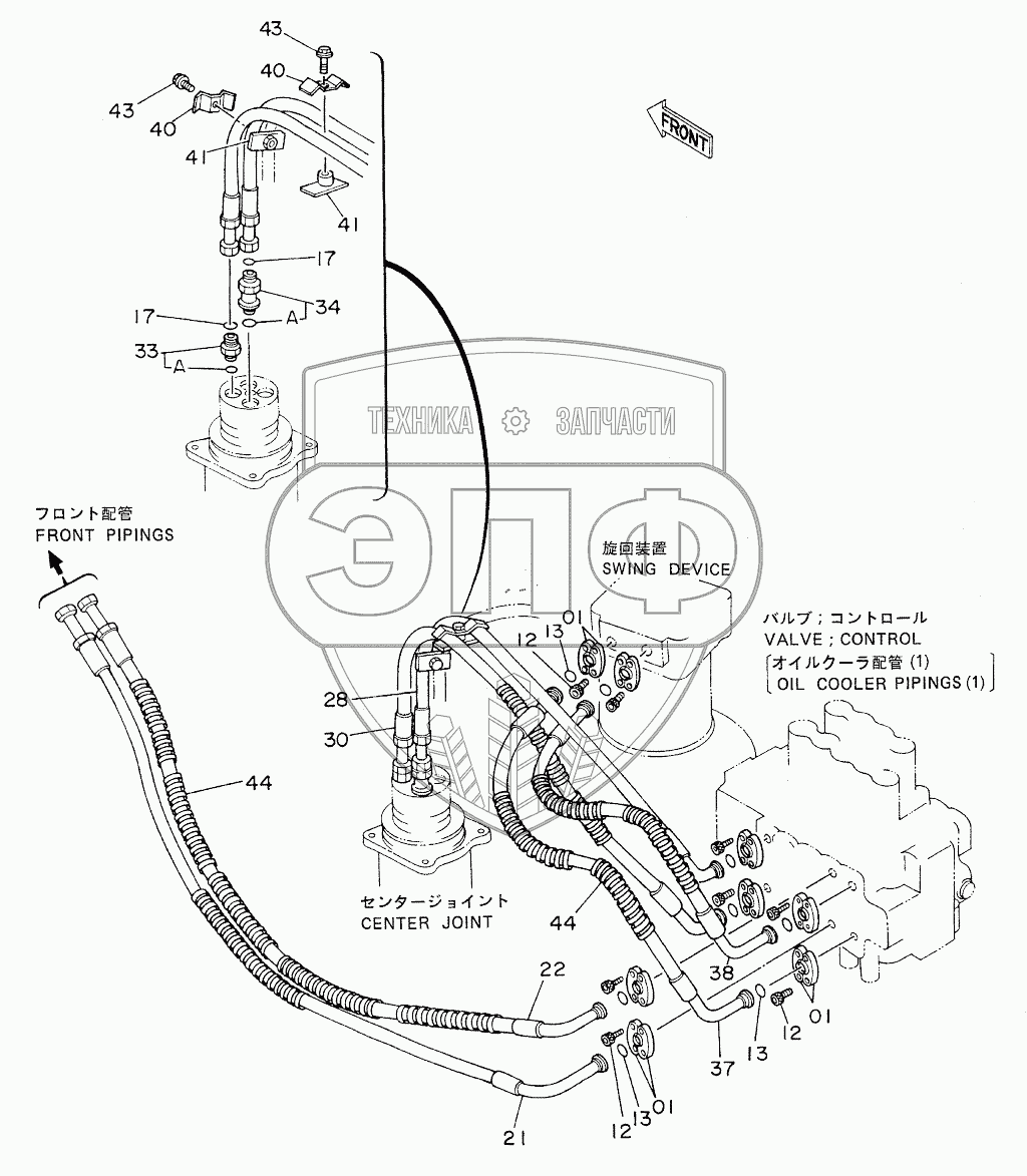 Каталог запасных частей к технике: Hitachi EX-220. MAIN PIPINGS (1)