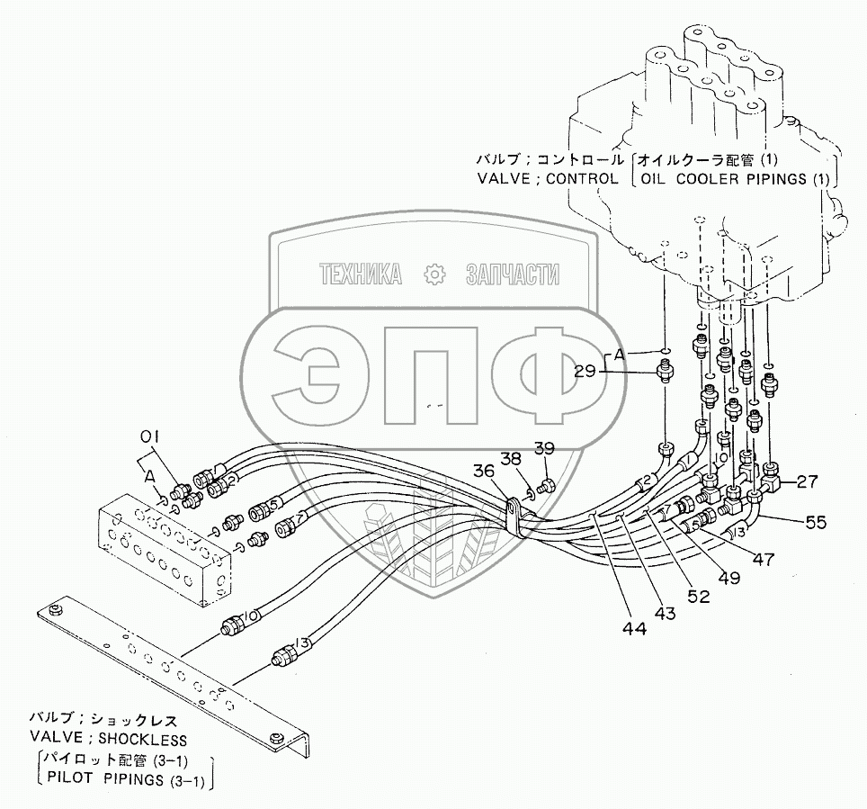 Каталог запасных частей к технике: Hitachi EX-220. PILOT PIPINGS (3-2)