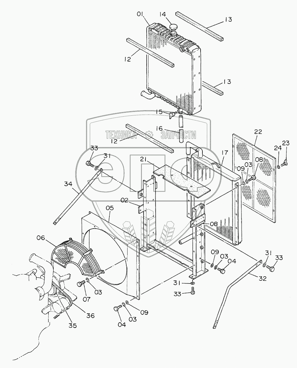 Каталог запасных частей к технике: Hitachi EX-220. RADIATOR (WAVY FIN)