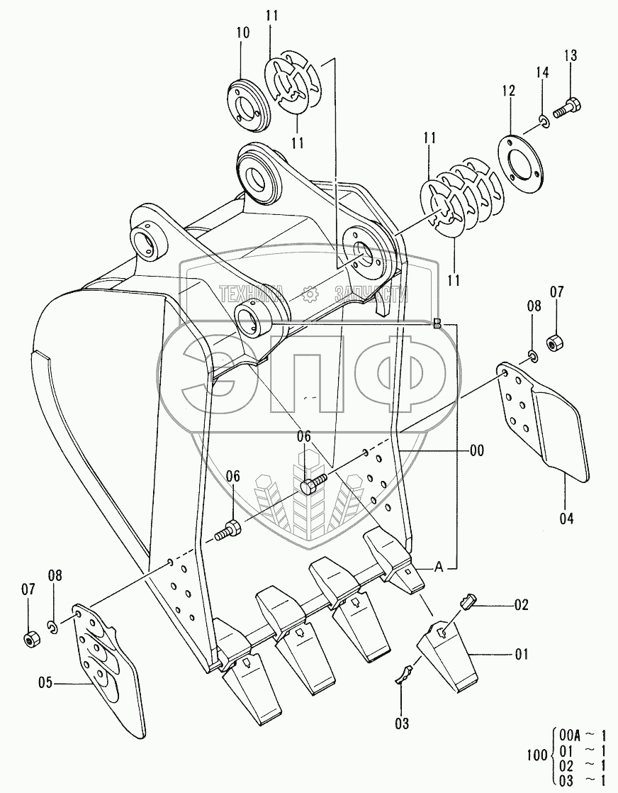 Каталог запасных частей к технике: Hitachi EX-220-2. BUCKET 0.7