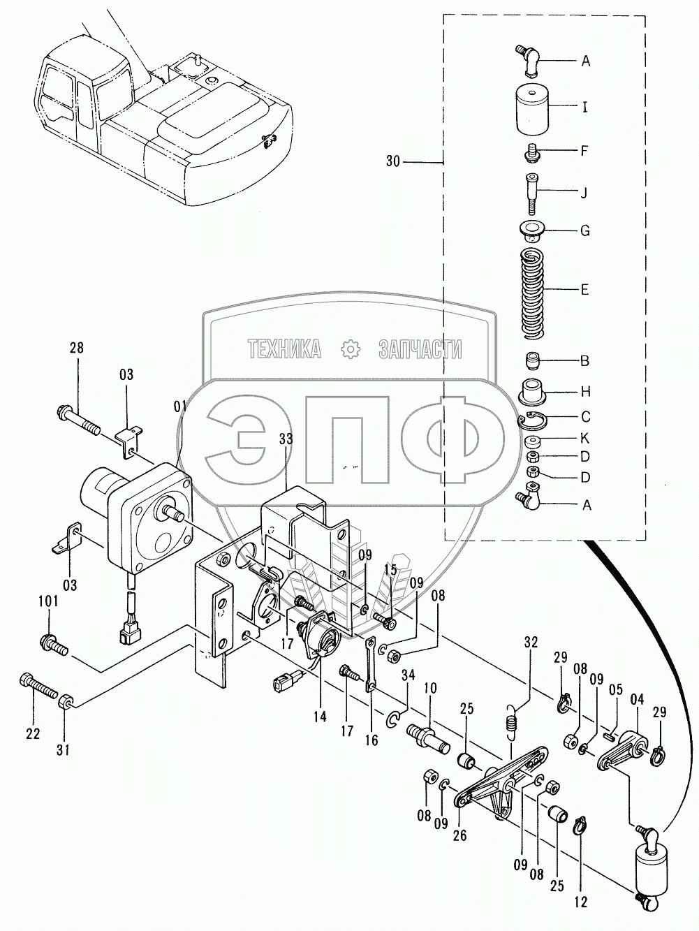 Каталог запасных частей к технике: Hitachi EX-220-2. ENGINE CONTROL MOTOR