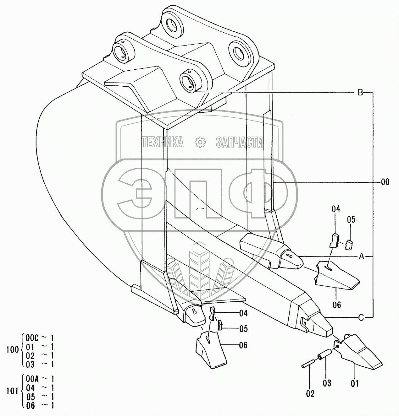 Каталог запасных частей к технике: Hitachi EX-220-2. RIPPER BUCKET 0.7