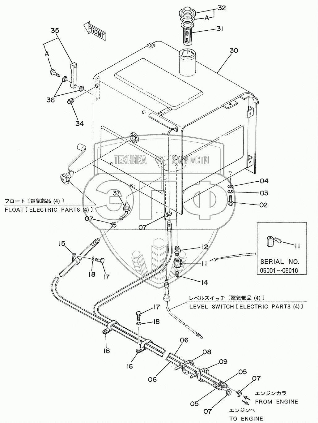 Каталог запасных частей к технике: Hitachi EX-270. FUEL TANK