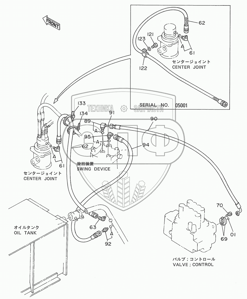 Каталог запасных частей к технике: Hitachi EX-270. OIL COOLER PIPINGS (3)