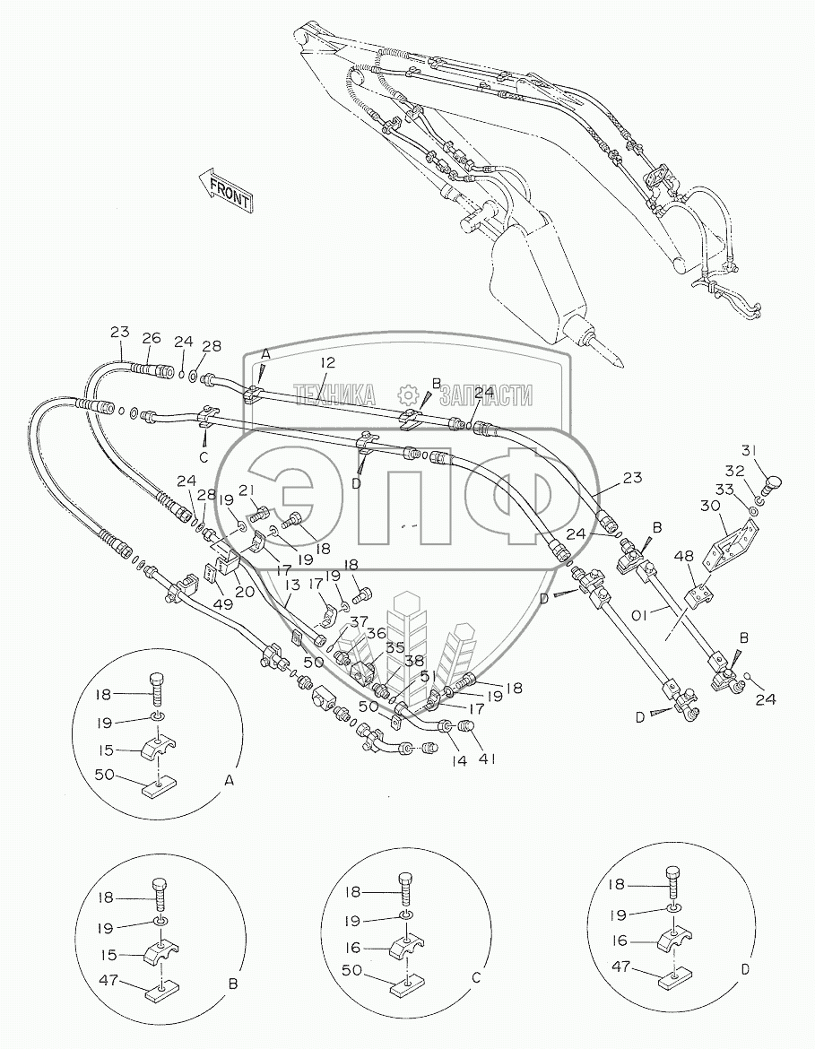 Каталог запасных частей к технике: Hitachi EX-270. PIPINGS (2) FOR BREAKER, CRUSHER