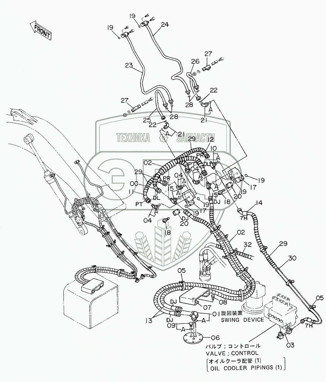 Каталог запасных частей к технике: Hitachi EX-300. HOSE RUPTURE VALVE PIPINGS (BOOM)