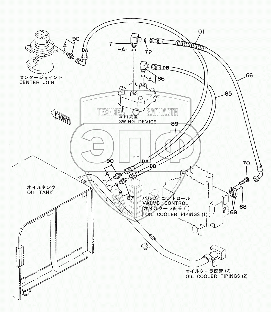 Каталог запасных частей к технике: Hitachi EX-300. OIL COOLER PIPINGS (3)