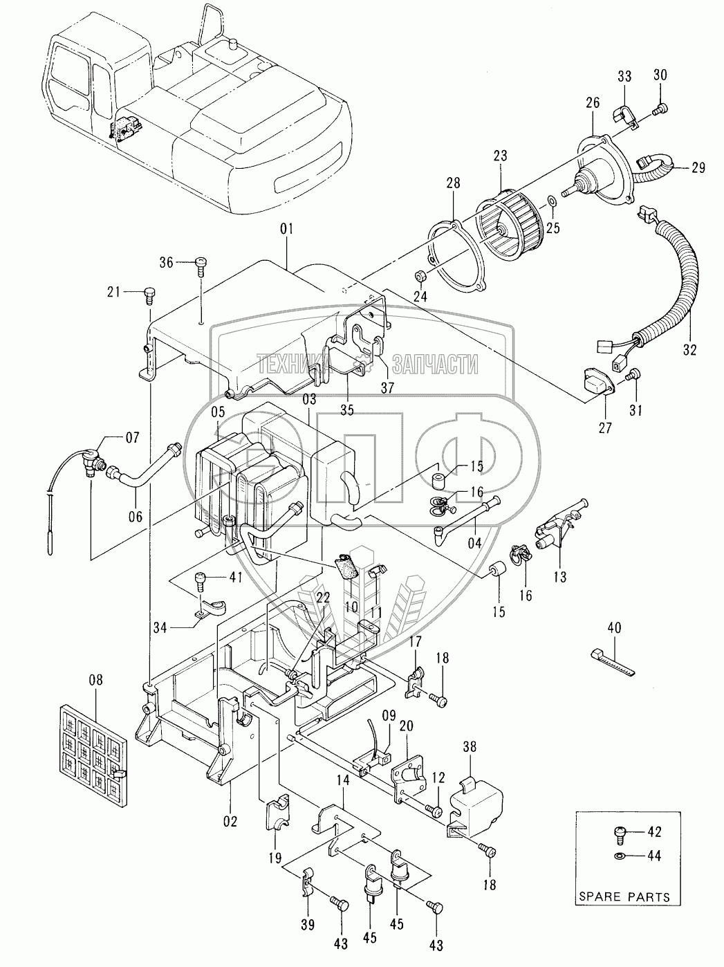 Каталог запасных частей к технике: Hitachi EX-300-2. AIR-CON. UNIT