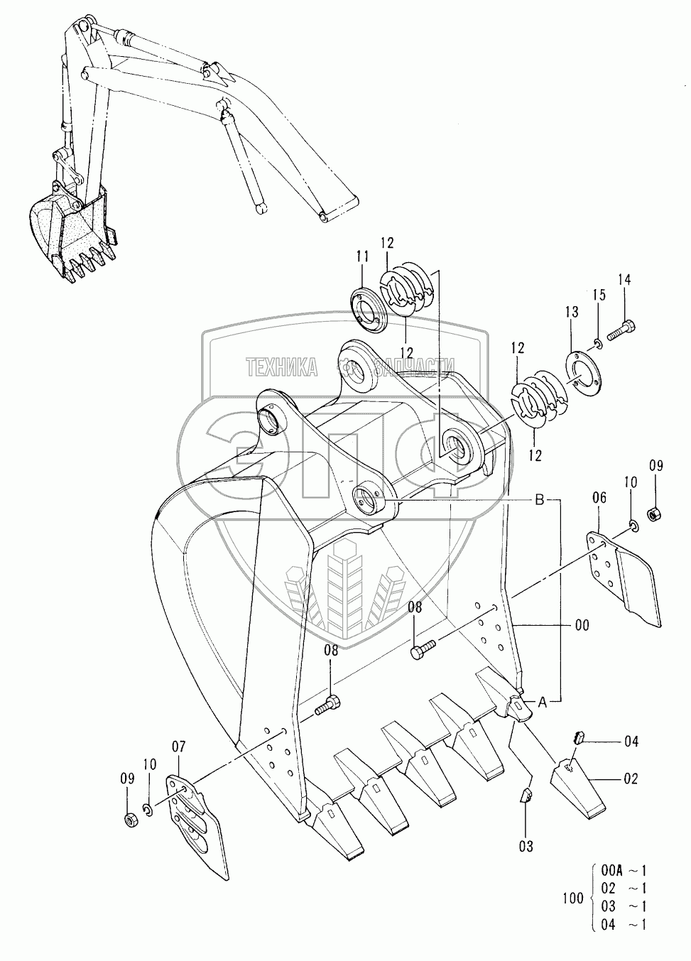 Каталог запасных частей к технике: Hitachi EX-300-2. BUCKET (1.2)