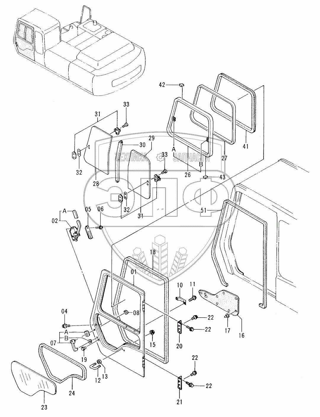 Каталог запасных частей к технике: Hitachi EX-300-2. CAB (5)