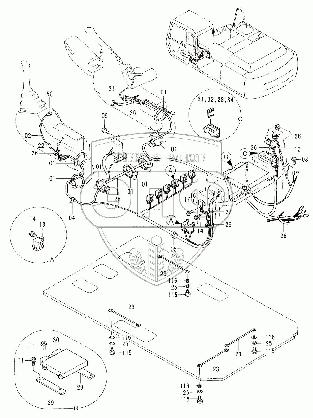 Каталог запасных частей к технике: Hitachi EX-300-2. ELECTRIC PARTS (2)(USA)