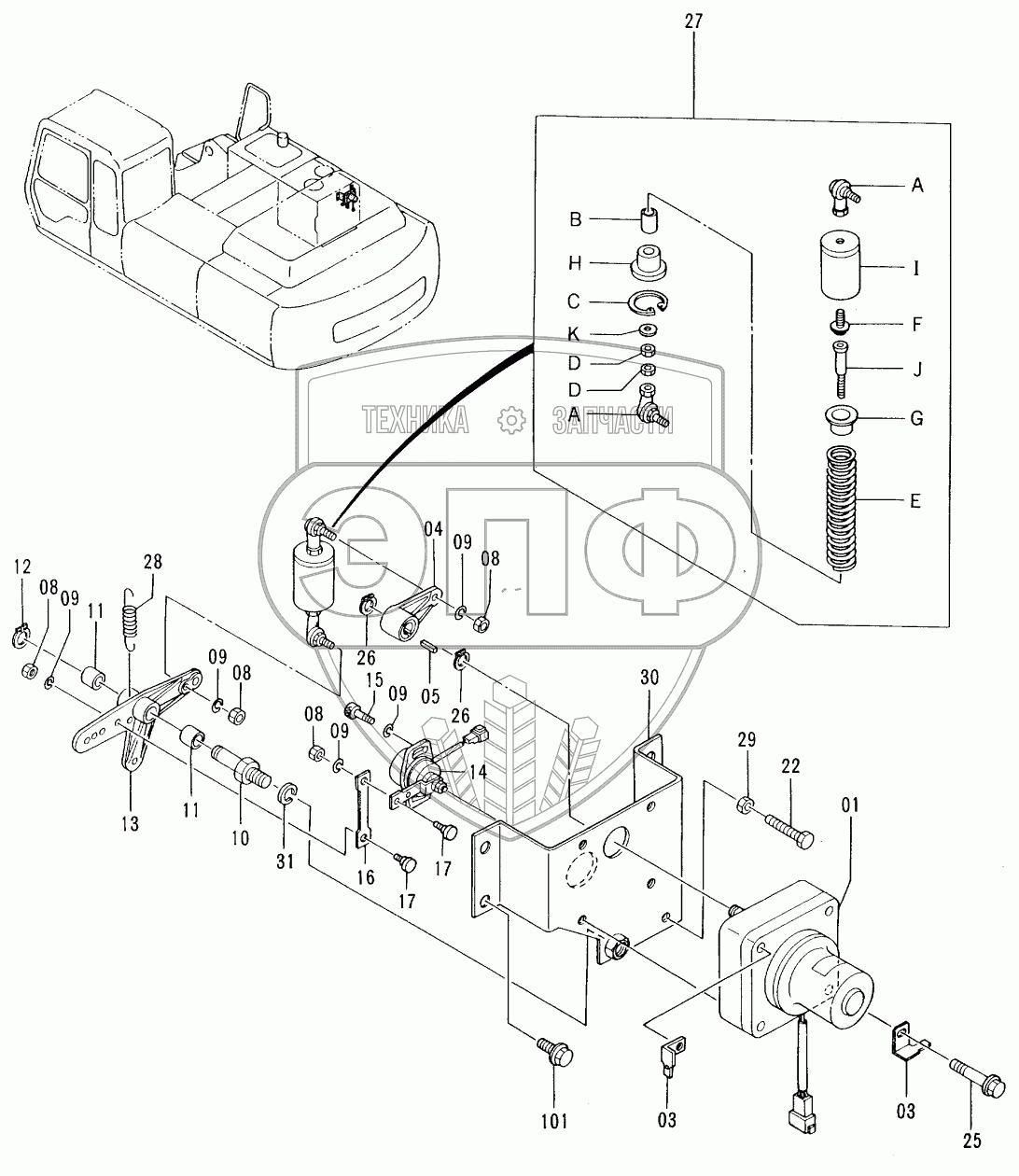 Каталог запасных частей к технике: Hitachi EX-300-2. ENGINE CONTROL MOTOR