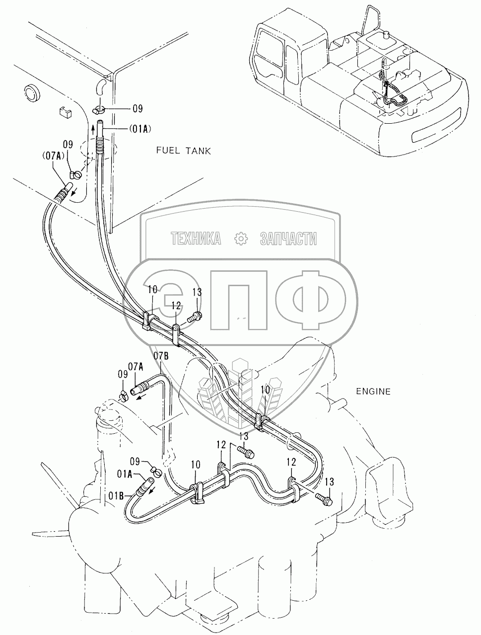 Каталог запасных частей к технике: Hitachi EX-300-2. FUEL PIPINGS