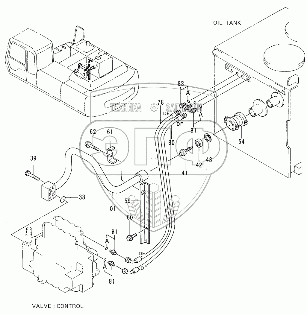 Каталог запасных частей к технике: Hitachi EX-300-2. OIL COOLER PIPINGS (3)