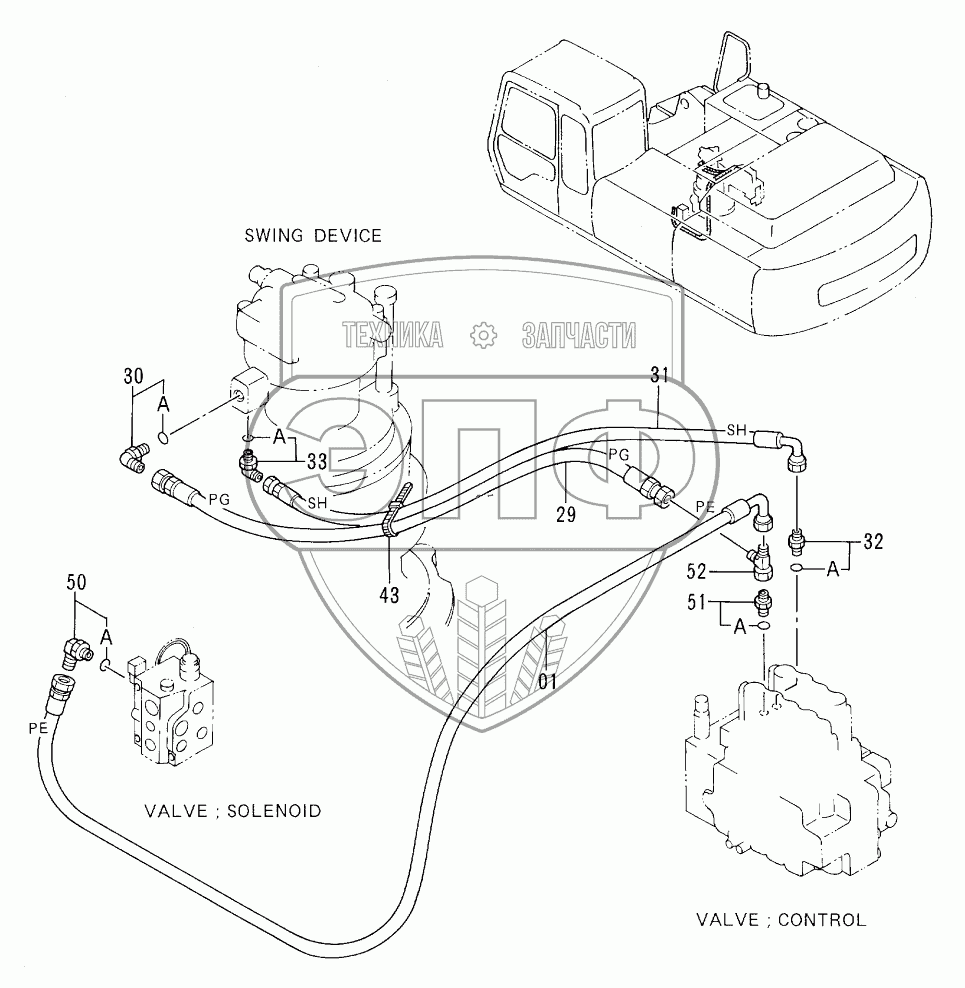 Каталог запасных частей к технике: Hitachi EX-300-2. PILOT PIPINGS (2-3)