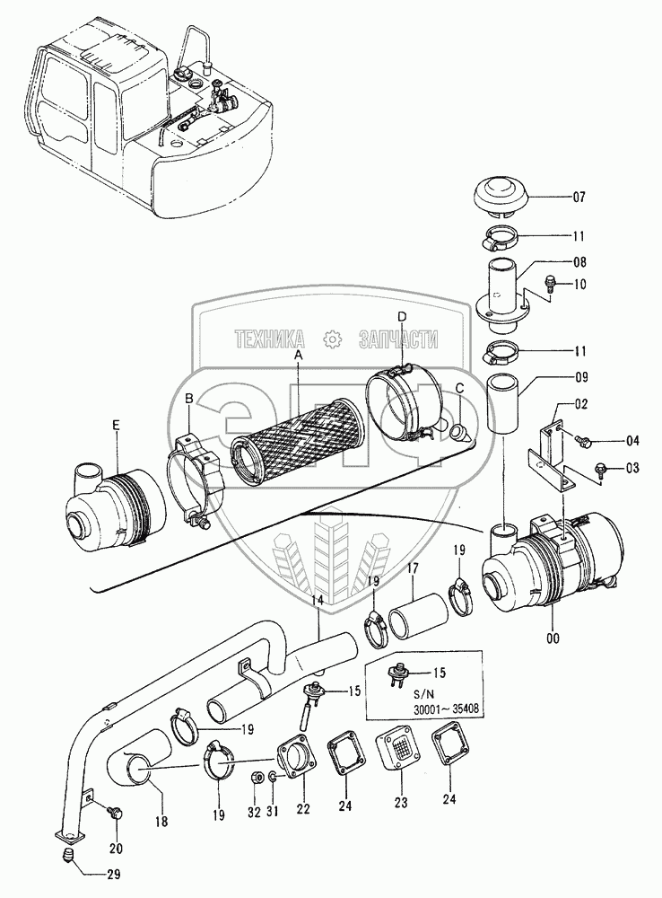 Каталог запасных частей к технике: Hitachi EX-60-2. Air Cleaner
