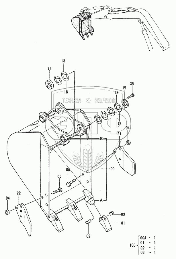 Каталог запасных частей к технике: Hitachi EX-60-2. Bucket 0.2