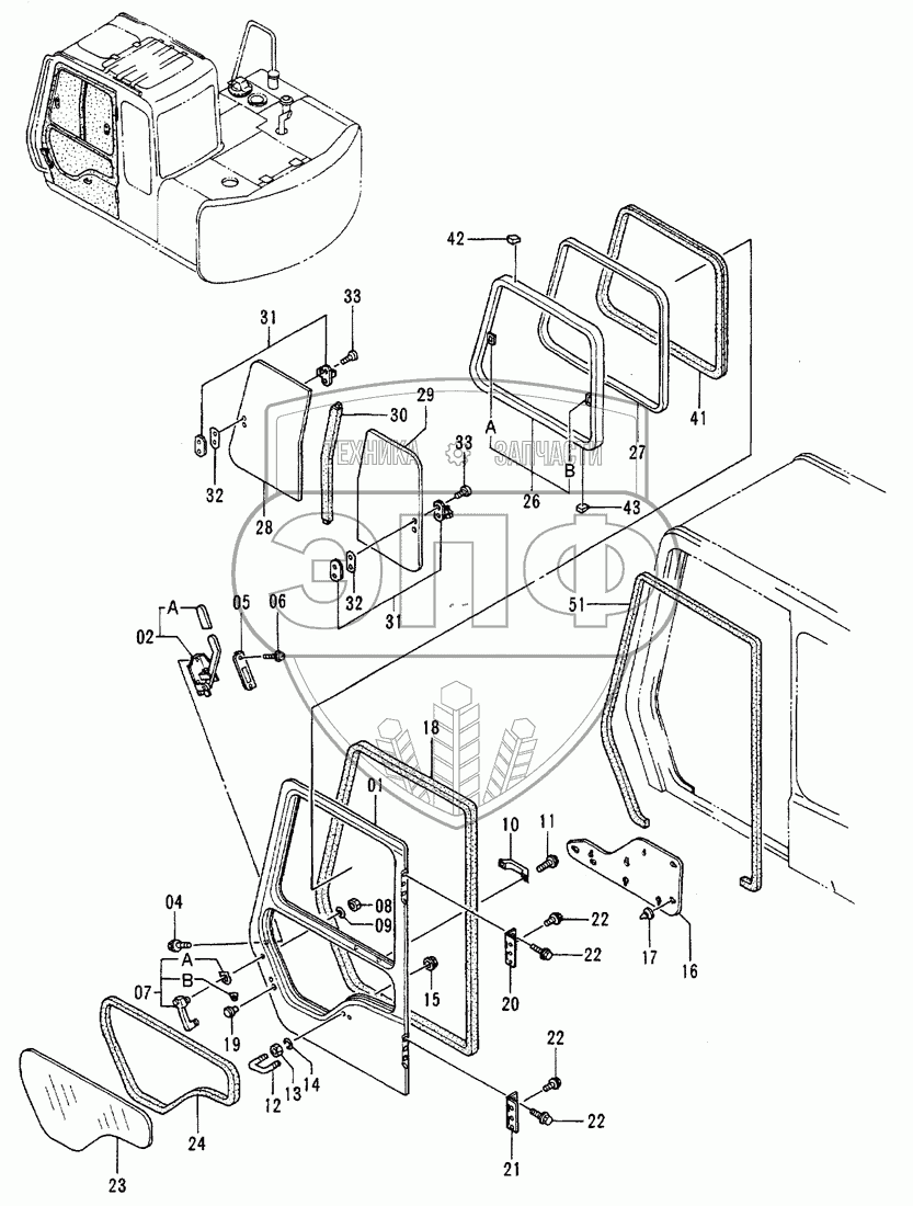 Каталог запасных частей к технике: Hitachi EX-60-2. Cab (5)