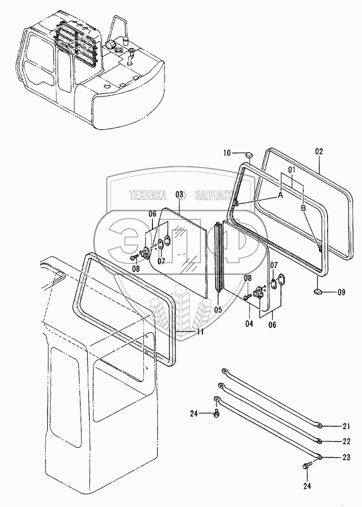 Каталог запасных частей к технике: Hitachi EX-60-2. Cab (6) (STD)