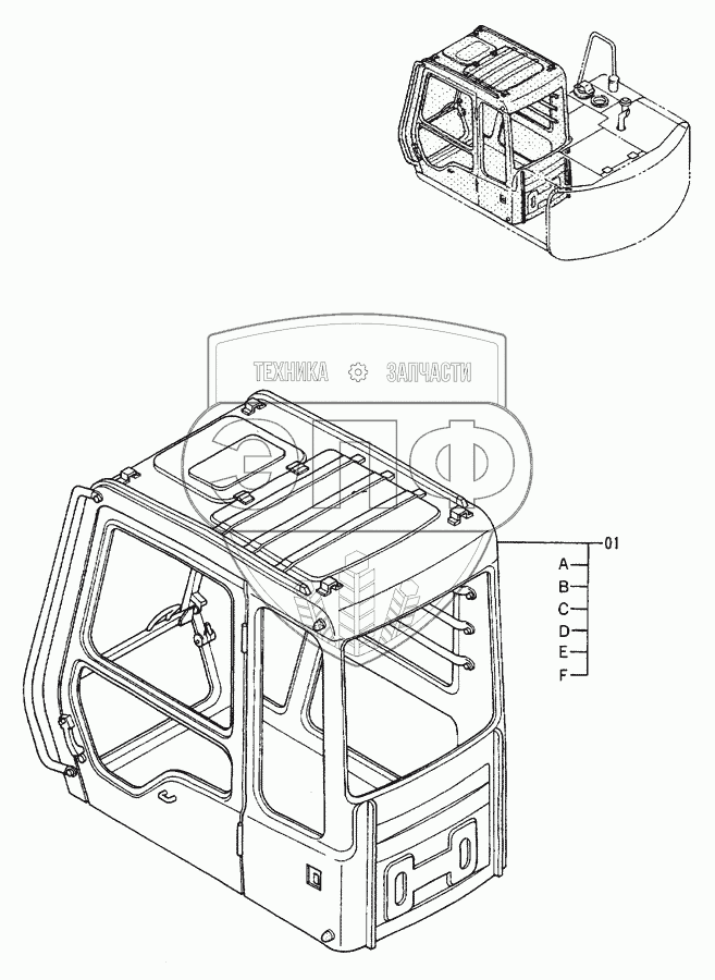 Каталог запасных частей к технике: Hitachi EX-60-2. Cab (STD)