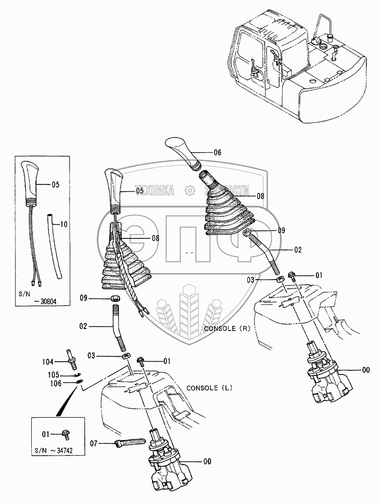 Каталог запасных частей к технике: Hitachi EX-60-2. Control Lever (1)