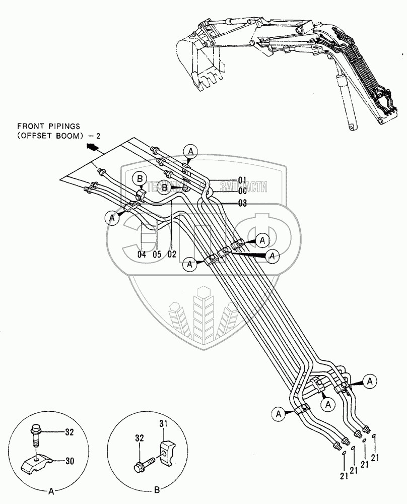 Каталог запасных частей к технике: Hitachi EX-60-2. Front Pipings (Offset Boom)-1