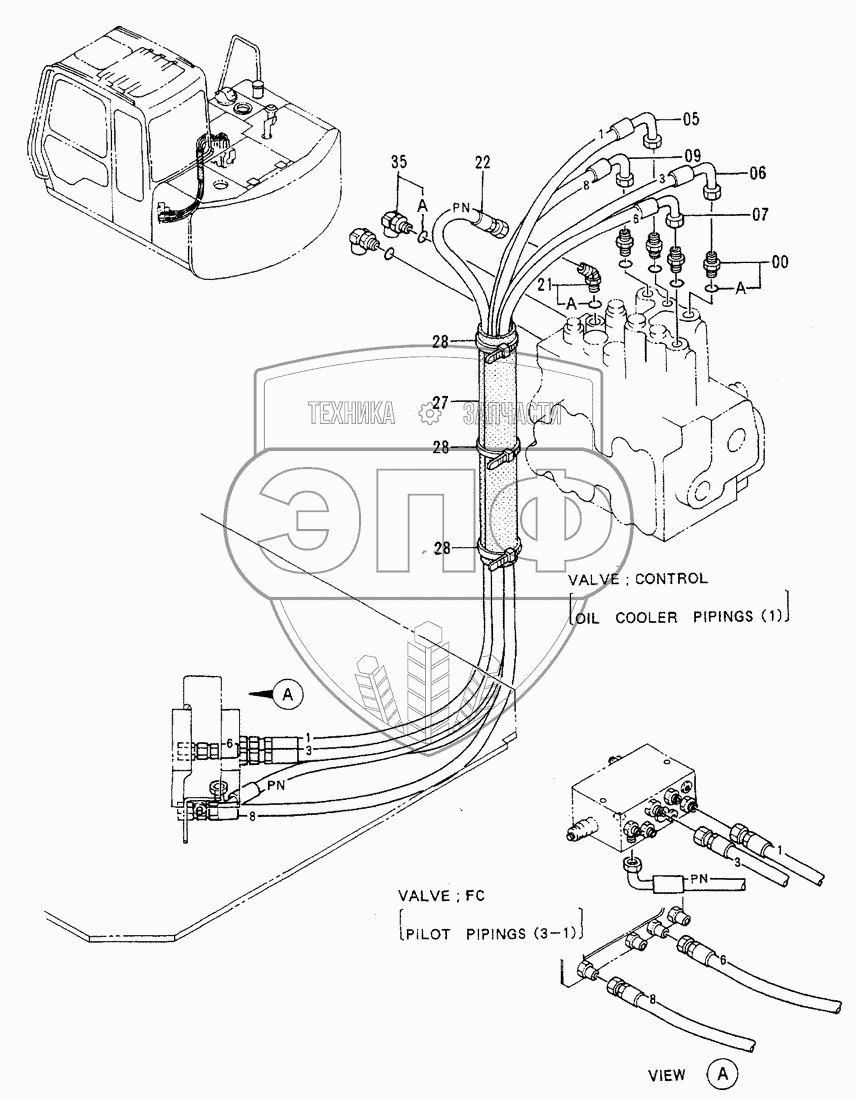 Каталог запасных частей к технике: Hitachi EX-60-2. Pilot Pipings (2-1)