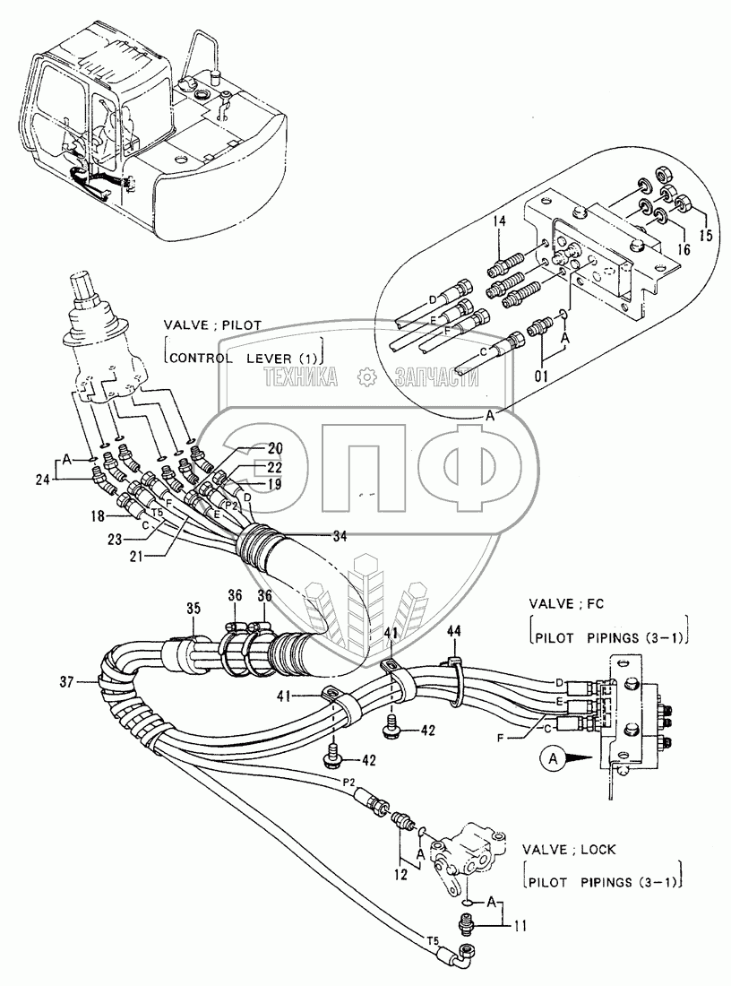 Каталог запасных частей к технике: Hitachi EX-60-2. Pilot Pipings (3-2)