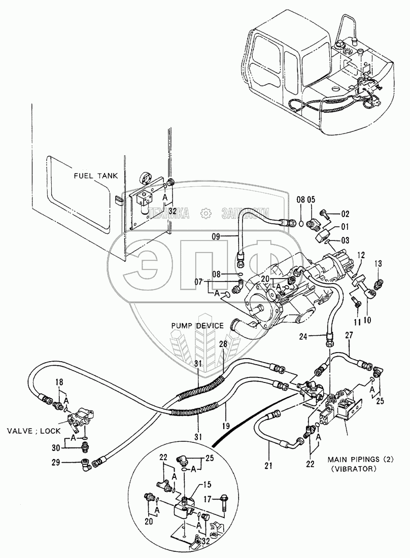Каталог запасных частей к технике: Hitachi EX-60-2. Pilot Pipings (Vibrator)