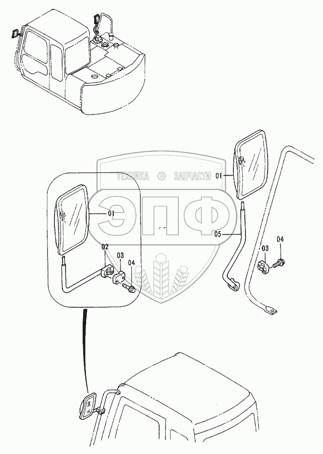 Каталог запасных частей к технике: Hitachi EX-60-2. Rearview Mirror (Option)