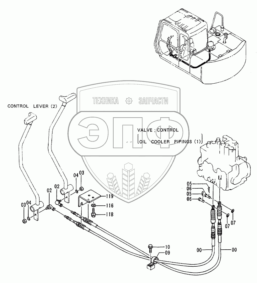 Каталог запасных частей к технике: Hitachi EX-60-2. Travel Lever Cable