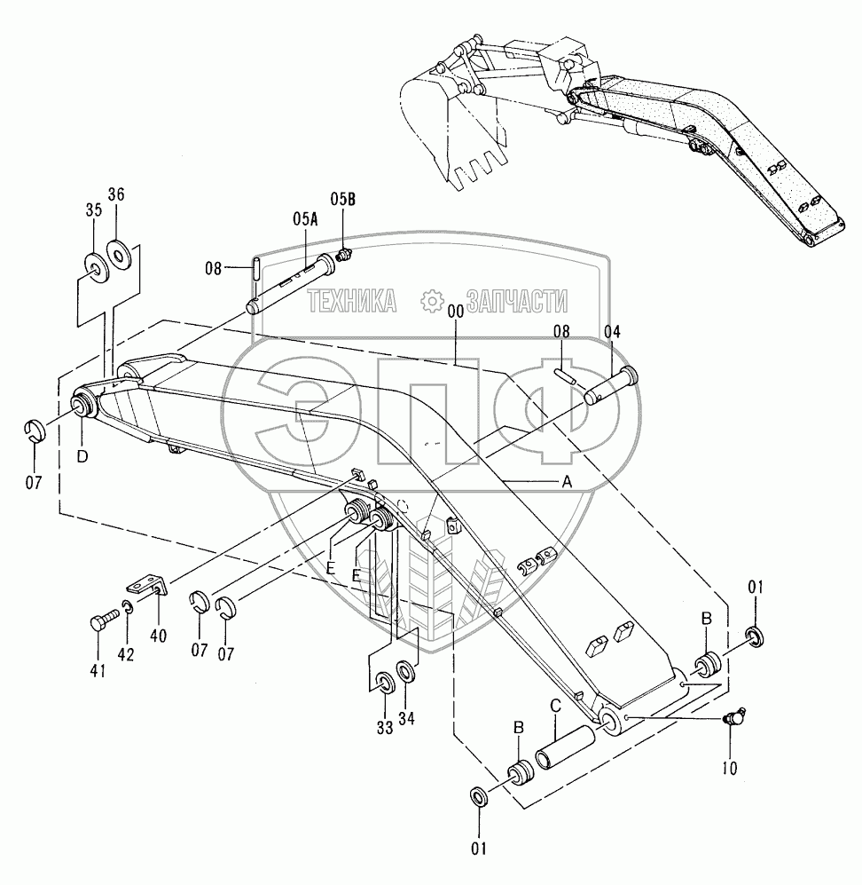 Каталог запасных частей к технике: Hitachi EX-60-3. BOOM <SHORT REACH>