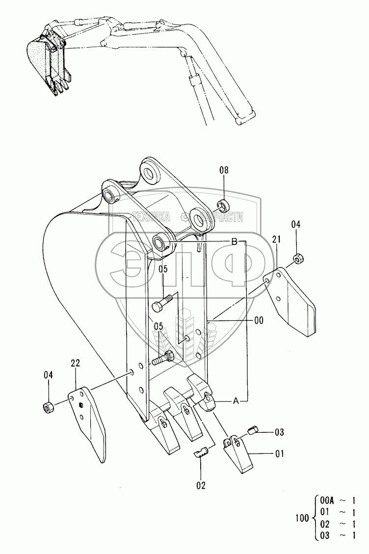 Каталог запасных частей к технике: Hitachi EX-60-3. BUCKET (0.1)