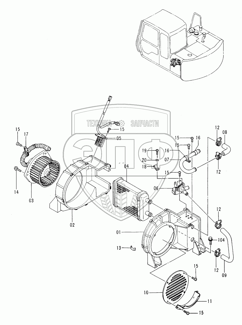 Каталог запасных частей к технике: Hitachi EX-60-3. CAR HEATER
