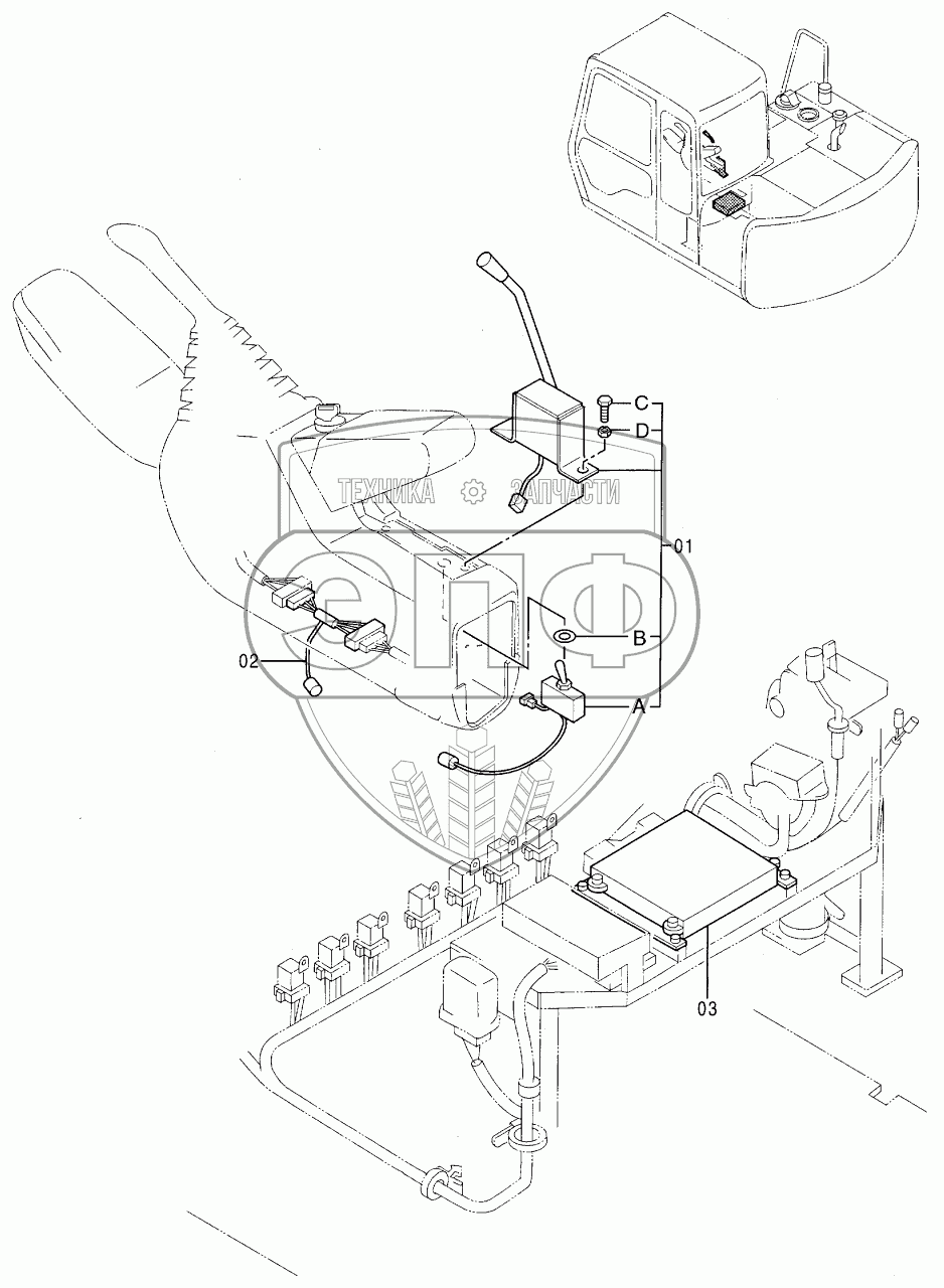 Каталог запасных частей к технике: Hitachi EX-60-3. ENGINE CONTROL LEVER <OPTION>