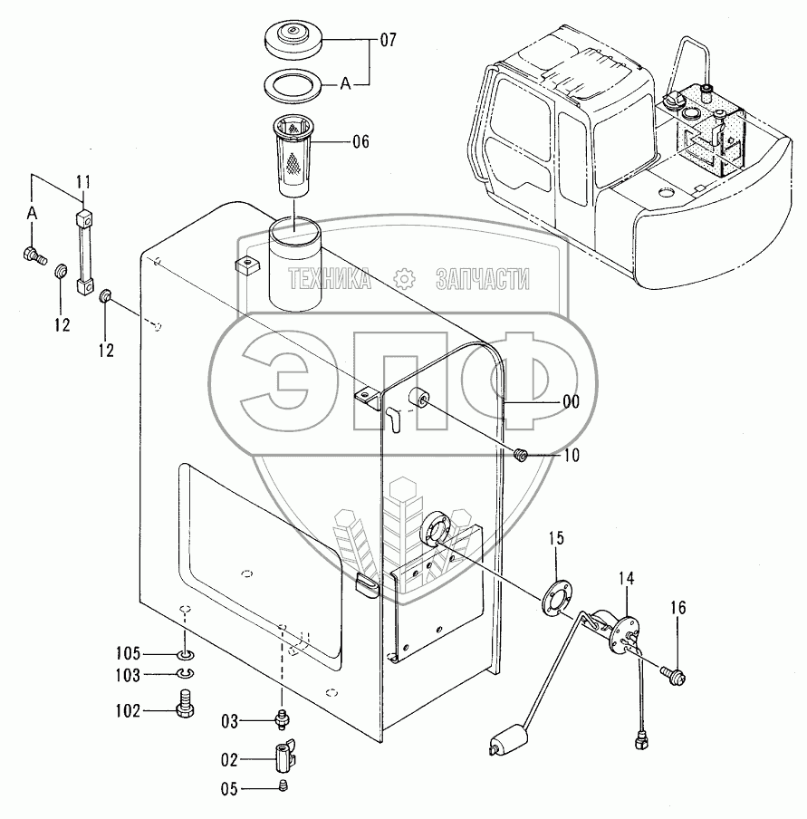 Каталог запасных частей к технике: Hitachi EX-60-3. FUEL TANK