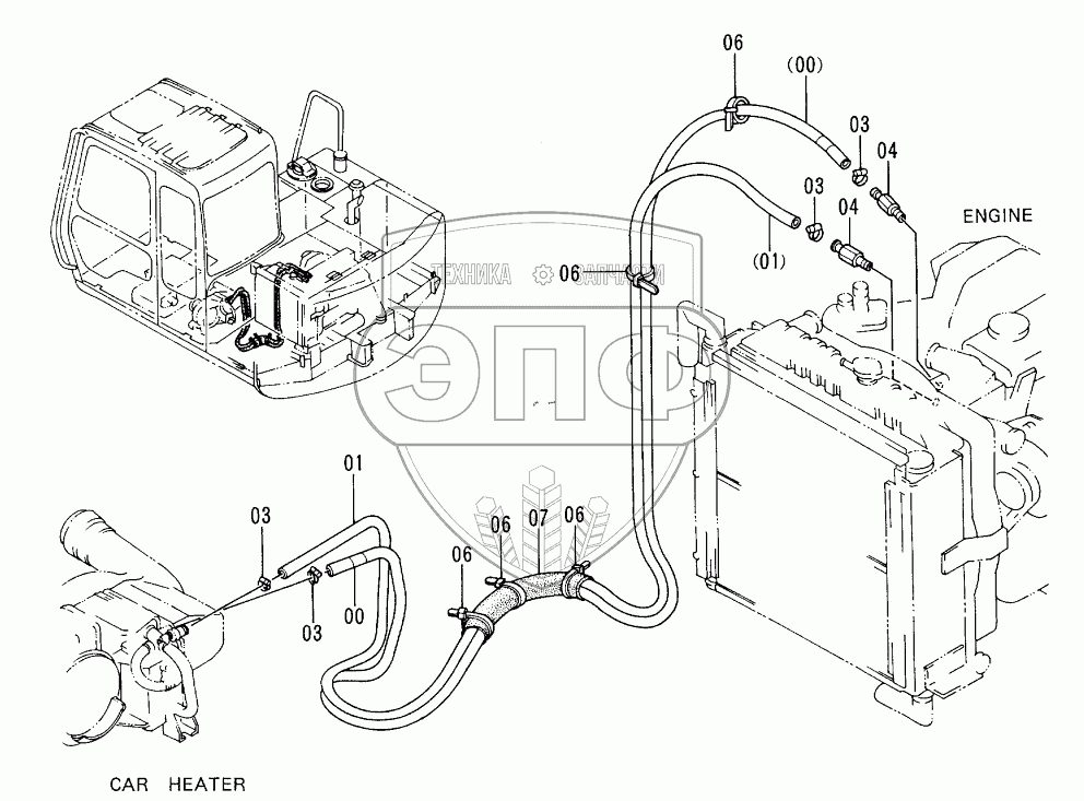 Каталог запасных частей к технике: Hitachi EX-60-3. HEATER PIPINGS