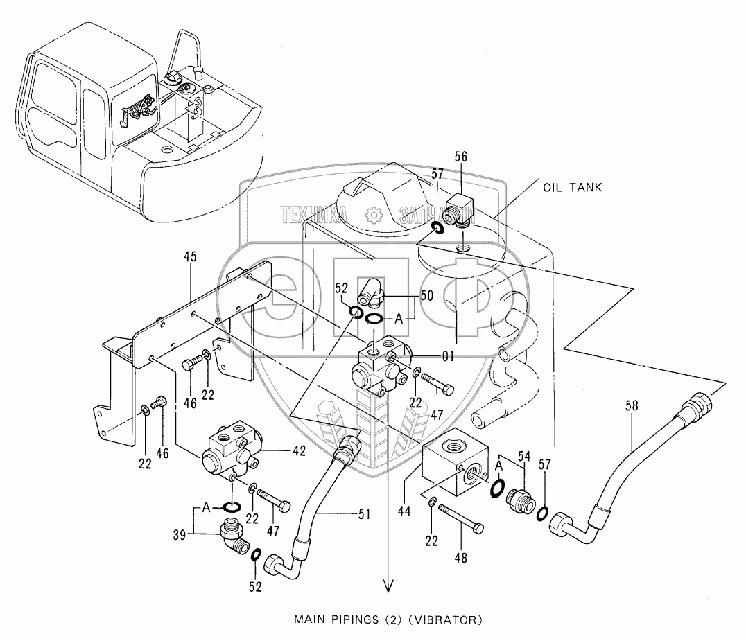 Каталог запасных частей к технике: Hitachi EX-60-3. MAIN PIPINGS <VIBRATOR>