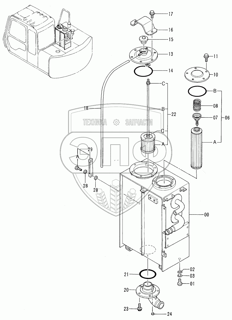 Каталог запасных частей к технике: Hitachi EX-60-3. OIL TANK