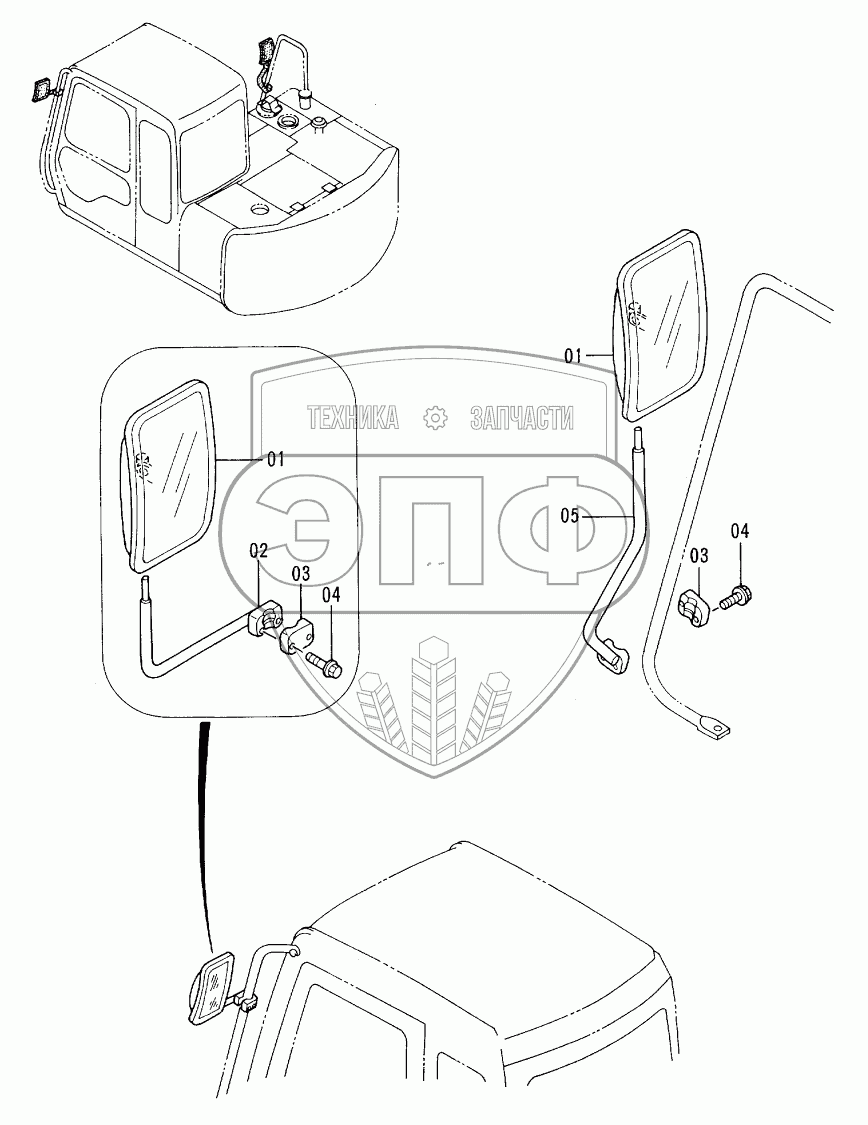 Каталог запасных частей к технике: Hitachi EX-60-3. REARVIEW MIRROR <OPTION>