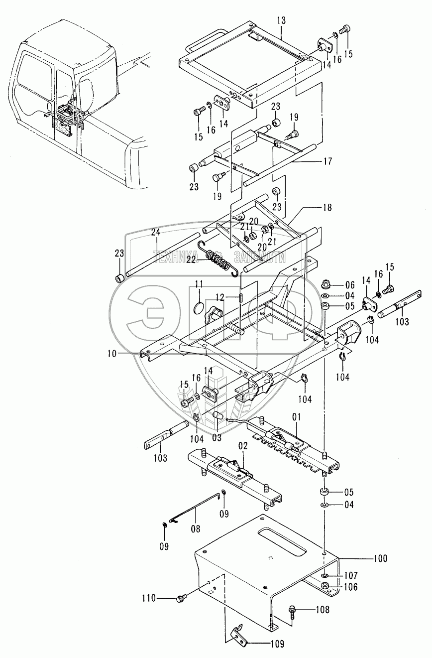 Каталог запасных частей к технике: Hitachi EX-60-3. SEAT STAND (STD)