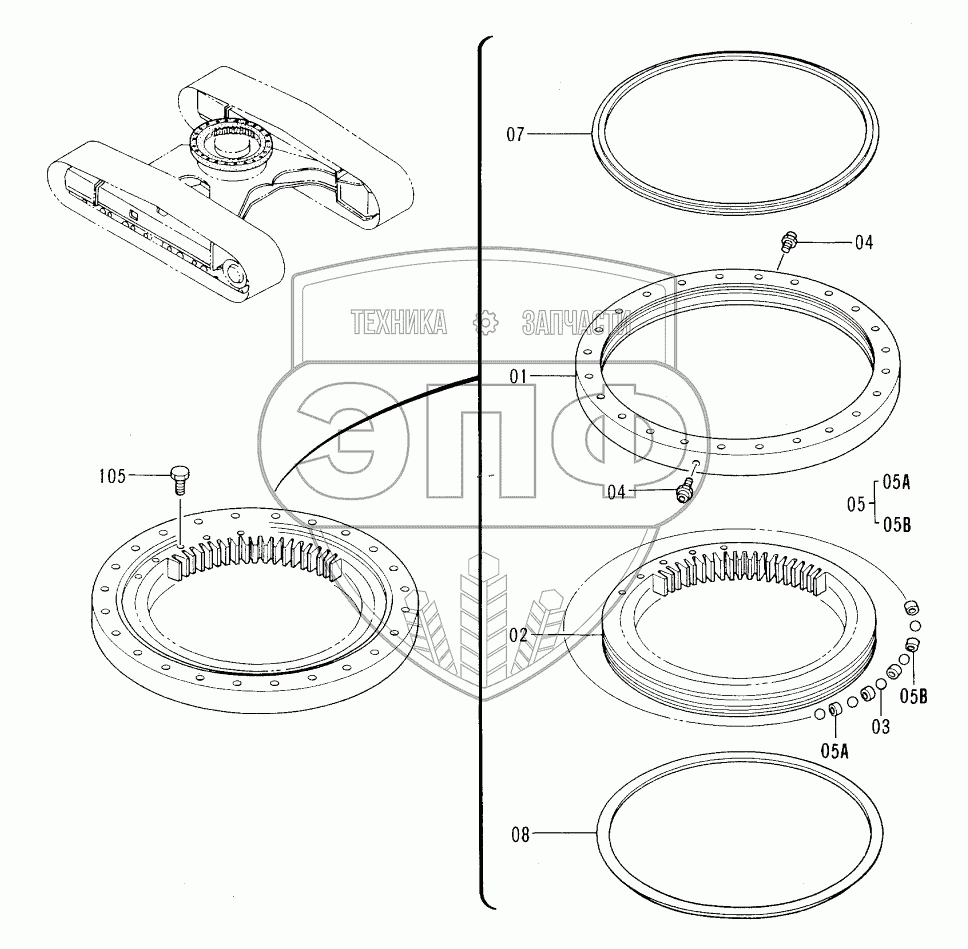 Каталог запасных частей к технике: Hitachi EX-60-3. SWING BEARING
