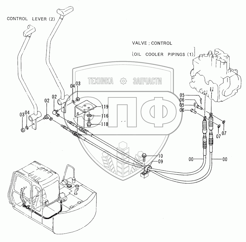 Каталог запасных частей к технике: Hitachi EX-60-3. TRAVEL LEVER CABLE
