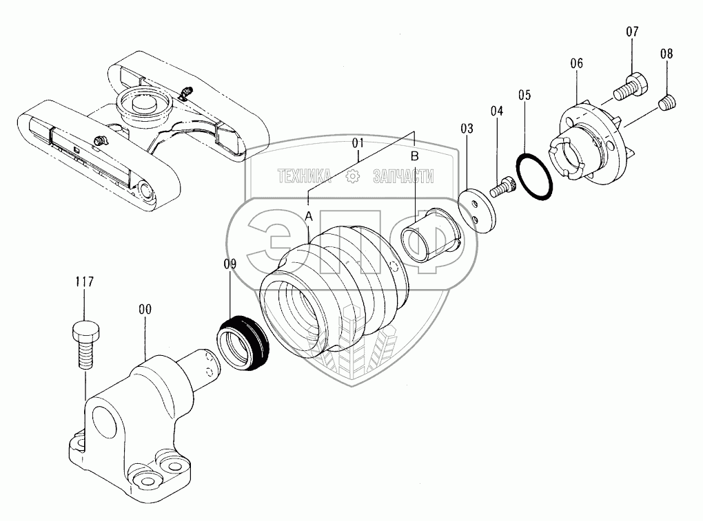 Каталог запасных частей к технике: Hitachi EX-60-3. UPPER ROLLER