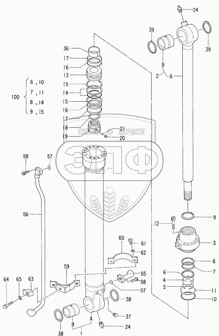 Каталог запасных частей к технике: Hitachi Компоненты EX-100-2. CYL., BUCKET 30001-