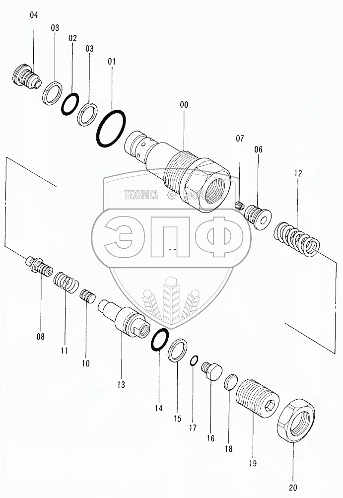 Каталог запасных частей к технике: Hitachi Компоненты EX-100-2. VALVE, RELIEF 30001-H01177