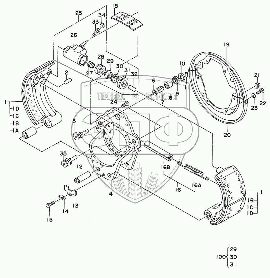 Каталог запасных частей к технике: Hitachi Компоненты EX-100WD. BRAKE