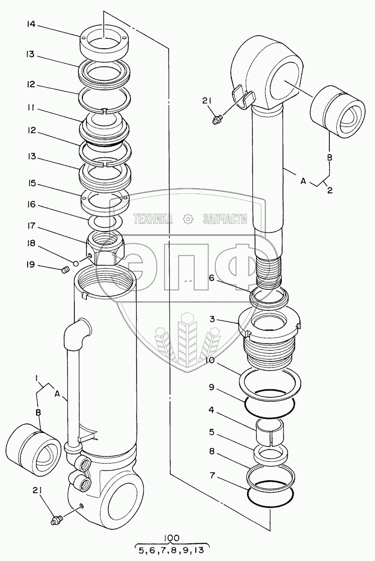 Каталог запасных частей к технике: Hitachi Компоненты EX-100WD. CYL., BLADE (R)